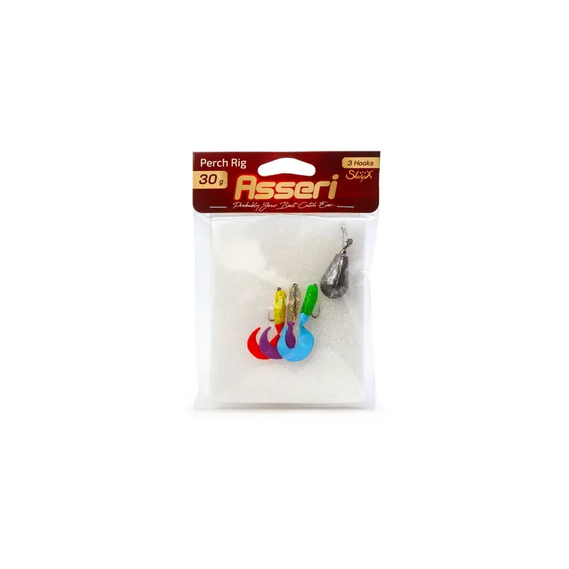 Valmis ahvenapüügi rakendus Asseri brändilt 3 konksu ja alumise raskusega. Ühele tamiilile on juba kokku pandud kolm külgharuga rakendust jigikonksude ja kummikaladega ning all on tilgakujuline raskus — kiire kasutada: seo põhiliinile ja hakka püüdma. Sobib aktiivseks ahvena otsinguks (astmeline vedu, tõsted, lohistamine) ning soovi korral saab peibutised lihtsalt enda omade vastu vahetada.
