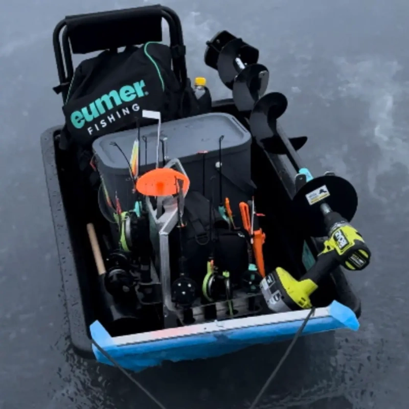 Eumer jääpuuri hoidik muudab talipüügi liikumised sujuvamaks ja varustuse transportimise muretumaks.