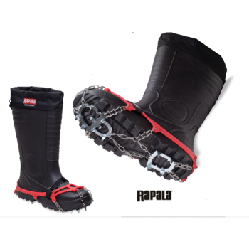 Rapala Greenland Ice Grippers. Powerful and sturdy spikes for perfect grip on the ice or other slippery surfaces! Durable rubber. Velcro closure above the foot for optimal fit around the shoe. Easy to put on and off. Storage bag included.