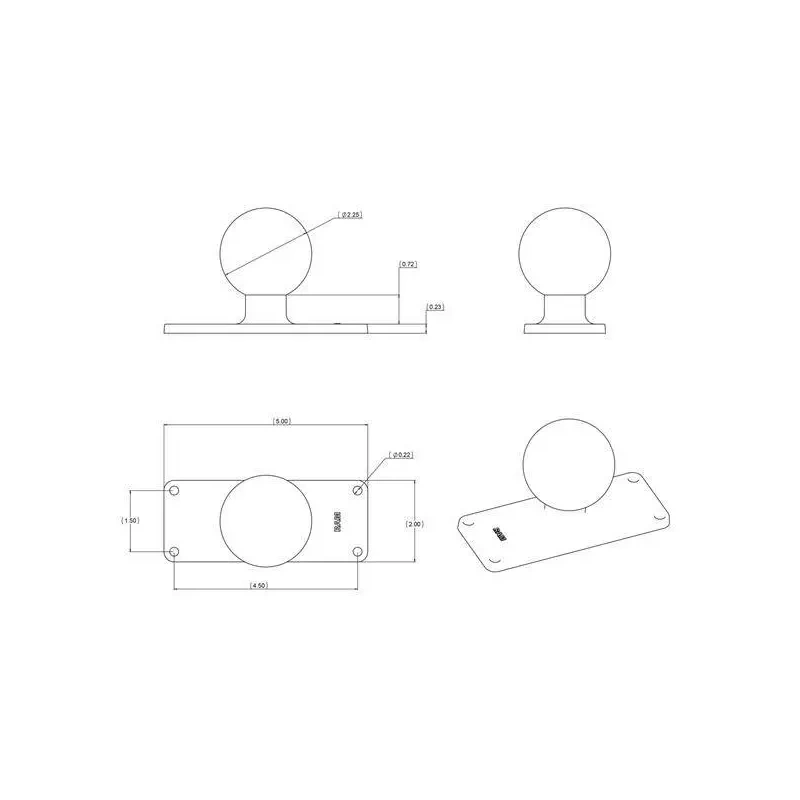 Kinnitus RAM® D 2.25" Ball Base 1.5" x 4.5" 4-Hole Pattern (plaat 38x64mm)