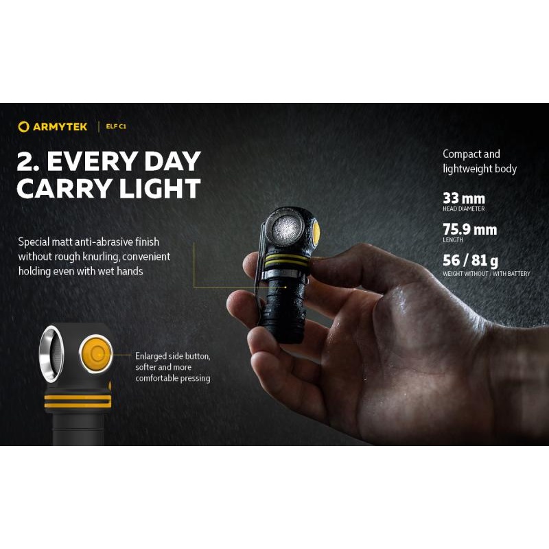 Pealamp Armytek Elf C1, Micro-USB, kuni 930lm, soe valgus