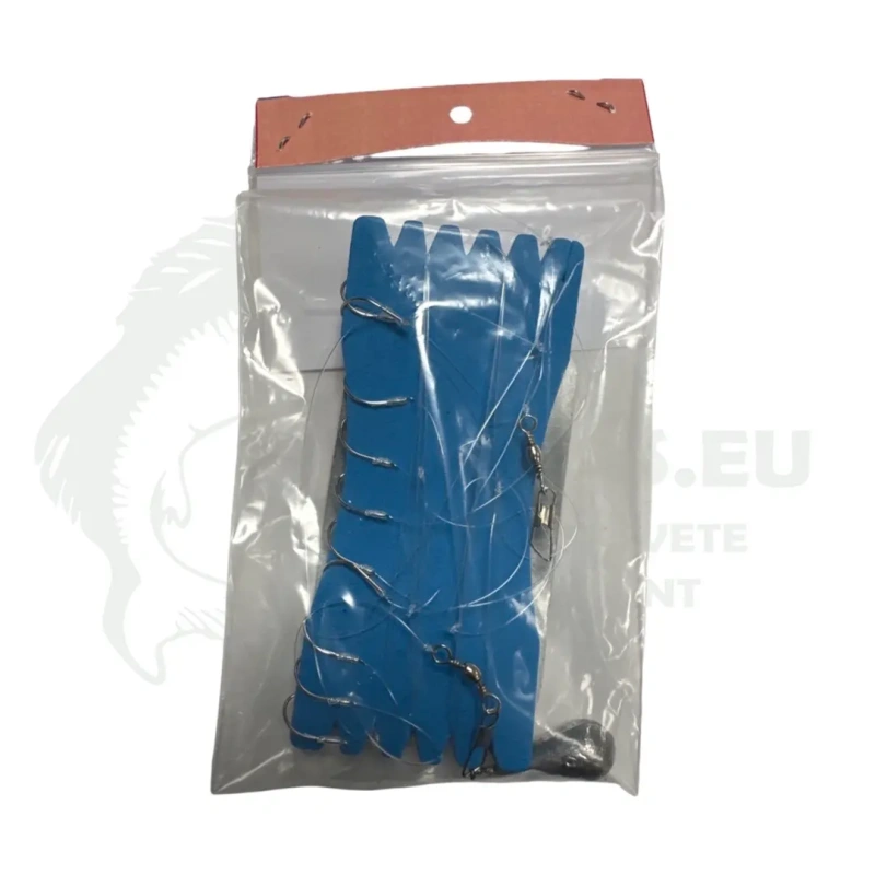 Spetsiaalselt räimepüügiks valmistatud 10-konksuline rakendus, mis on varustatud 20g tinaga. Antud rakendus on valmistatud käsitööna.