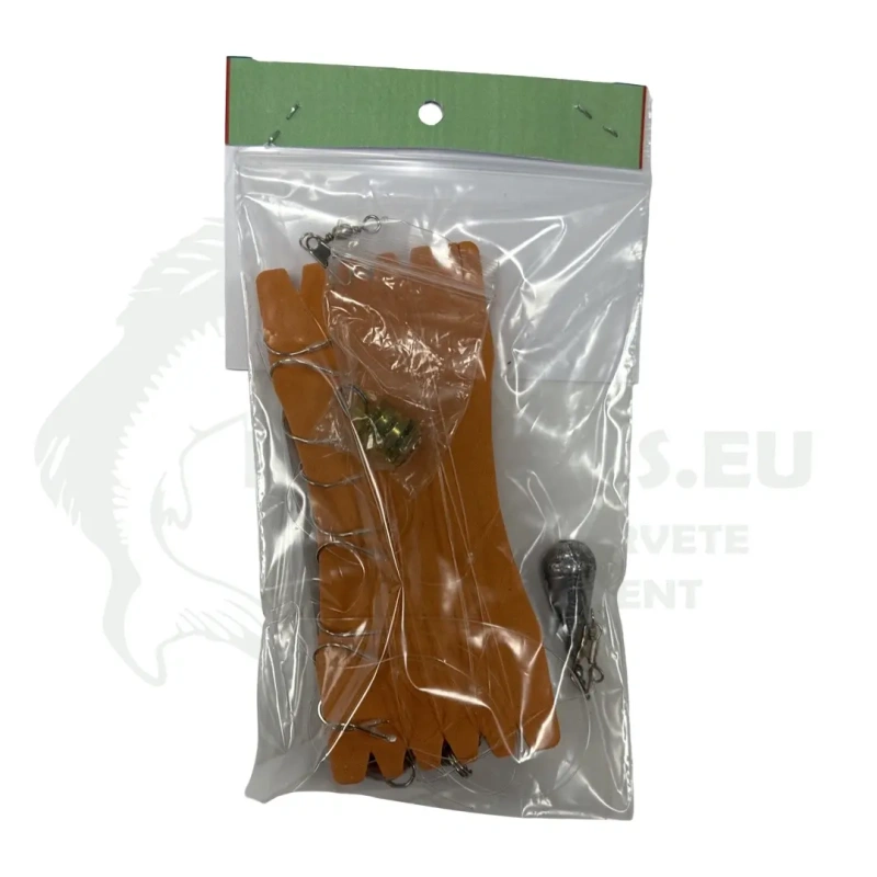 Spetsiaalselt räimepüügiks valmistatud 10-konksuline rakendus, mis on varustatud 20g tinaga. Antud rakendus on valmistatud käsitööna.