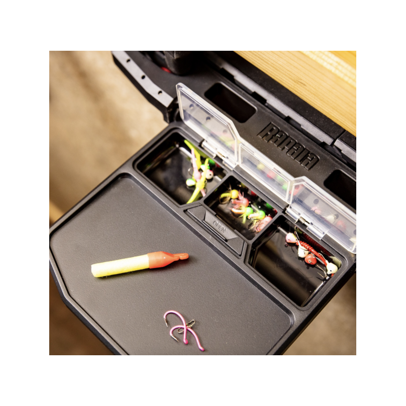 The Rapala® SmartHub® is the ultimate, versatile system that gives you endless options to interchange and adjust for your needs. With the SmartHub Work Station, you can easily tie knots, adjust hooks, and knock out other on-the-water tasks. The folding work area has clear lid compartments for lure storage and drop-in slots and hang hooks for tools like scissors and pliers. With the SmartHub Work Station, you'll have all you need, right where you want it. Attach SmartHub Work Station to SmartHub Flat Mount, which is included to the package. You can also attach it to the SmartHub Track System, which is sold separately.