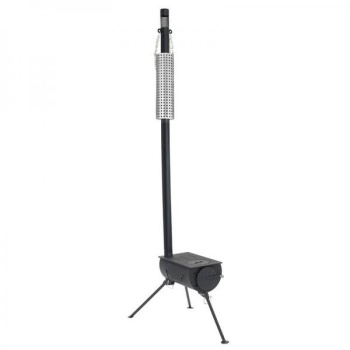 The easy-to-assemble wood-burning Denali tent stove can be used with tents that include a stovepipe port and features a flue protector to protect the tent fabric at this point. When not in use the stovepipe sections are stored inside the firebox and flue protector, and the legs fold to the body for small pack size and transportation.Size: 339 cm max height