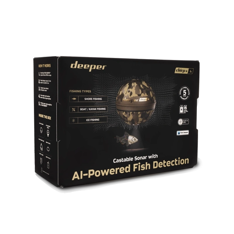 Deeper Chirp+ 4 on uusima põlvkonna kaasaskantav kajalood, mis viib kalastamise täiesti uuele tasemele. See on loodud kalastajale, kes soovib maksimaalset täpsust, kiiret infot ja lihtsat kasutust nii kaldalt, paadist kui ka jäält püüdes.Tänu uuendatud tehnoloogiale ja nutikale tarkvarale aitab Chirp+ 4 sul leida kalad kiiremini, eristada struktuure täpsemalt ning mõista veekogu paremini kui kunagi varem.